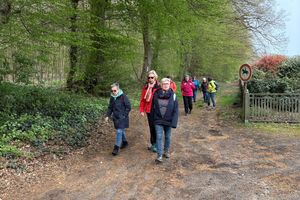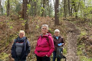 Die Bilder zeigen die Premiere der neuen Wanderführerinnen Birgit und Nicole bei ihrer ersten geführten Tour durch die Haard. Die Gruppe startete am Haardgrenzweg in Oer-Erkenschwick und erlebte eine abwechslungs-